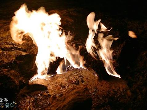 山不高,大概步行了20分钟,眼前的景象让人震撼,大大小小的火堆遍布山头,形状各异,仔细一看都是从山上不同的岩石缝中出来,整个山头就如静卧着一头多个口的喷火怪物在黑夜内更显朴朔迷离。找了一堆面积较大的火堆,静静地入神凝视,火光闪耀处仿佛看到前世今生。内心不禁有些许惊恐这头巨兽会突然苏醒,只快步地走向同伴们一起才感觉心慢慢安定下来。