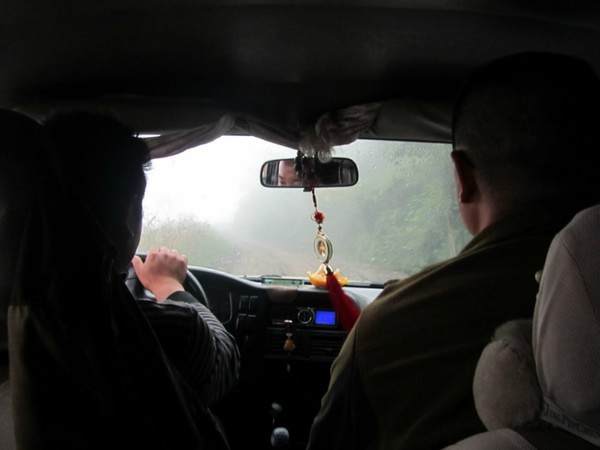 前方依然浓雾弥漫,能见度极低,还好,小马师傅对道路比较熟悉,一路上有惊无险,在大雾中蜗行3个半小时,于午时抵达牛背山佛光客栈,这个客栈就是小马师傅家开的。