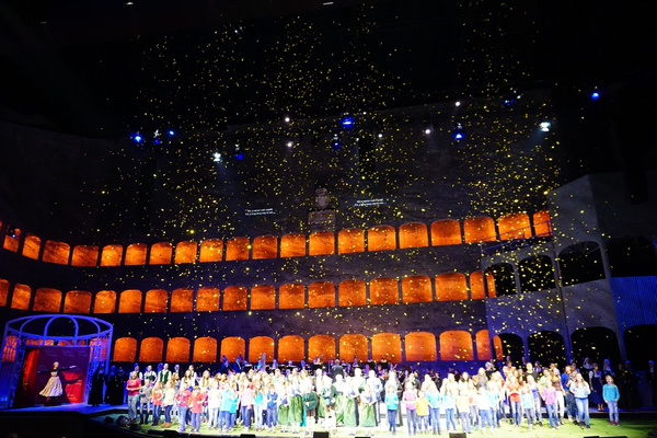 萨尔茨堡艺术节演出大厅内座无虚席,音乐剧《音乐之声》准时开演。当熟悉的音乐渐起时,怀旧的气氛弥漫开来。当特拉普用口哨呼唤孩子们时,一下子列队走出来11个孩子,4位“小”演员夹在其中,一片雷鸣般的掌声顿时炸响。约翰·冯·特拉普一家人走上舞台,电影、现实、与舞台终于有了完美的交集。演员们和特拉普一家感谢《音乐之声》、感谢萨尔茨堡,让他们一生拥有幸福的回忆。