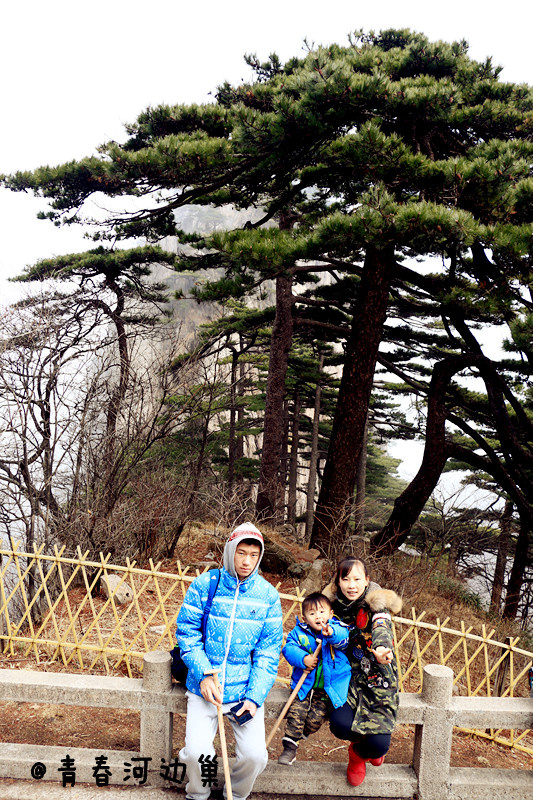 不过让我们最为震撼的还是云海,说不上来是雾气还是白云,层层叠叠,似有如无。在远处移动着,总有让人置身仙境的感觉。看着眼前的一切,仿佛也可以走上云霄。在迎客松前,参天大树让我们不由得心情愉悦。很多游客都会在此停留,我们一家三口在此拍了很多照片。