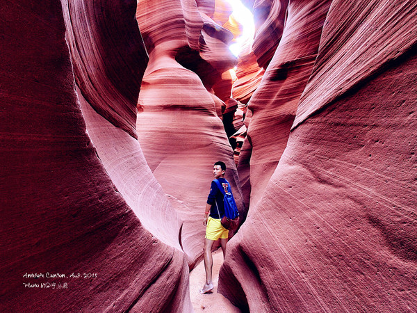 位于亚利桑那州Page小镇附近的羚羊谷,隐藏在这片红褐色河谷的隐秘处,分为上、下两个羚羊谷。一般来说,上羚羊谷开发的更完善些,游人如织,而政府为了保护这里,会控制每天入谷的人数,建议事先在网上预订门票,否则现到了那里有可能无法及时去参观。而下羚羊谷就原始得多,进入其中游览的难度略大一些(坡度大,峡谷深且窄),因而游客较少。我个人更喜欢下羚羊谷,因为这里更壮观,人少,更适合摄影。