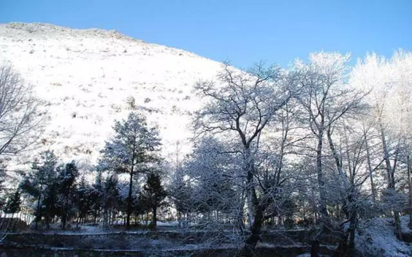 四周山林到处是漂亮的树挂,玉树琼枝,纤尘不染,神奇而又高洁。