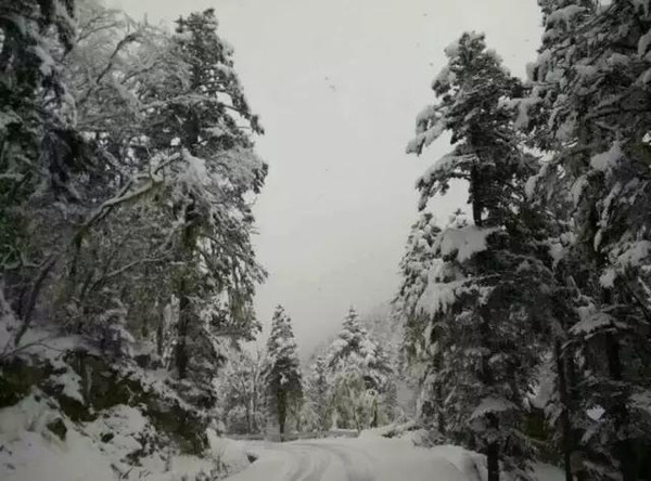 就算在下山的路途上,也是一片雪白的森林大片,蓝天下的雪白显得那样迷人。