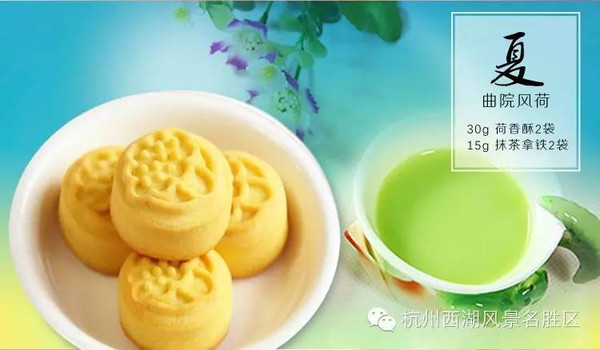 荷香酥:花纹精美,入口酥软,莲香恬淡。尝一口小酥淡淡的香,微风吹过,随风摇曳的荷叶送来阵阵清凉。