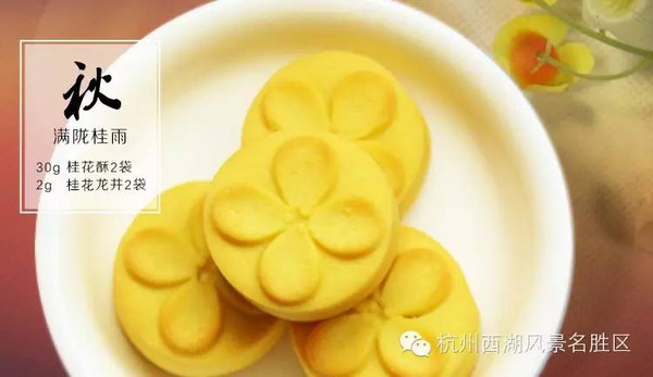 桂花酥:淡淡桂花香溶入其中,轻轻咬下一口,清香四溢,酥松香甜,享受妙不可言的自然味道。