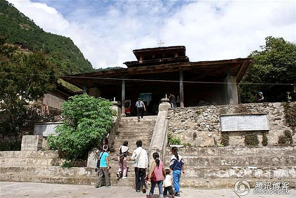 隐秘在青山之后,坐落于雪山之下,面向碧水的这一村落,目前生活着41户166人怒族和傈僳族村民,怒族居多,少数为傈僳族。这一百多人几乎是隐匿于与世隔绝的深山,过着一种胜似人间逍遥自在的生活。这里的民居式样原始古朴,以木结构为主,村民门外,南瓜、玉米以及以及罕见很胖的黄瓜,随意堆放,一根整木劈成的梯子,谁都可以爬上木制阁楼,那里存放着过冬粮食和其他杂物。因为我们到的那天正好是他们做礼拜,各家各户都没人,安静得掉根针都能听见。很多家的门畅着,个别上锁的,也仅仅是挂一把那种古老的插销锁,表示家中无人。路不拾遗,在如今社会,秋那桶给予这古老的成语一个现代注释。