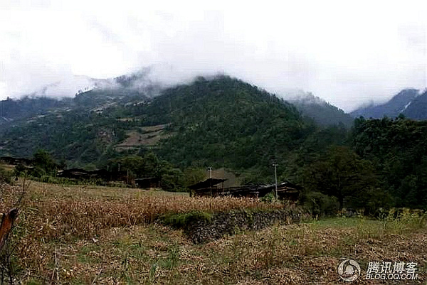 到秋那桶,车只能停在这面坡的一个平坝里。然后从房子的背后向右上山。