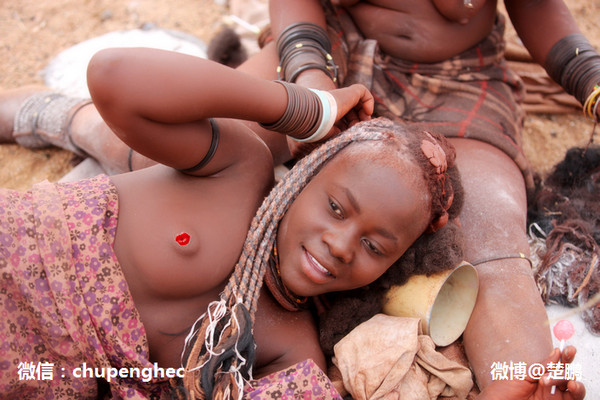 辛巴女子喜欢把一种红石碾成粉末和着牛油、羊油 涂抹全身,就连头发也要裹上一层。