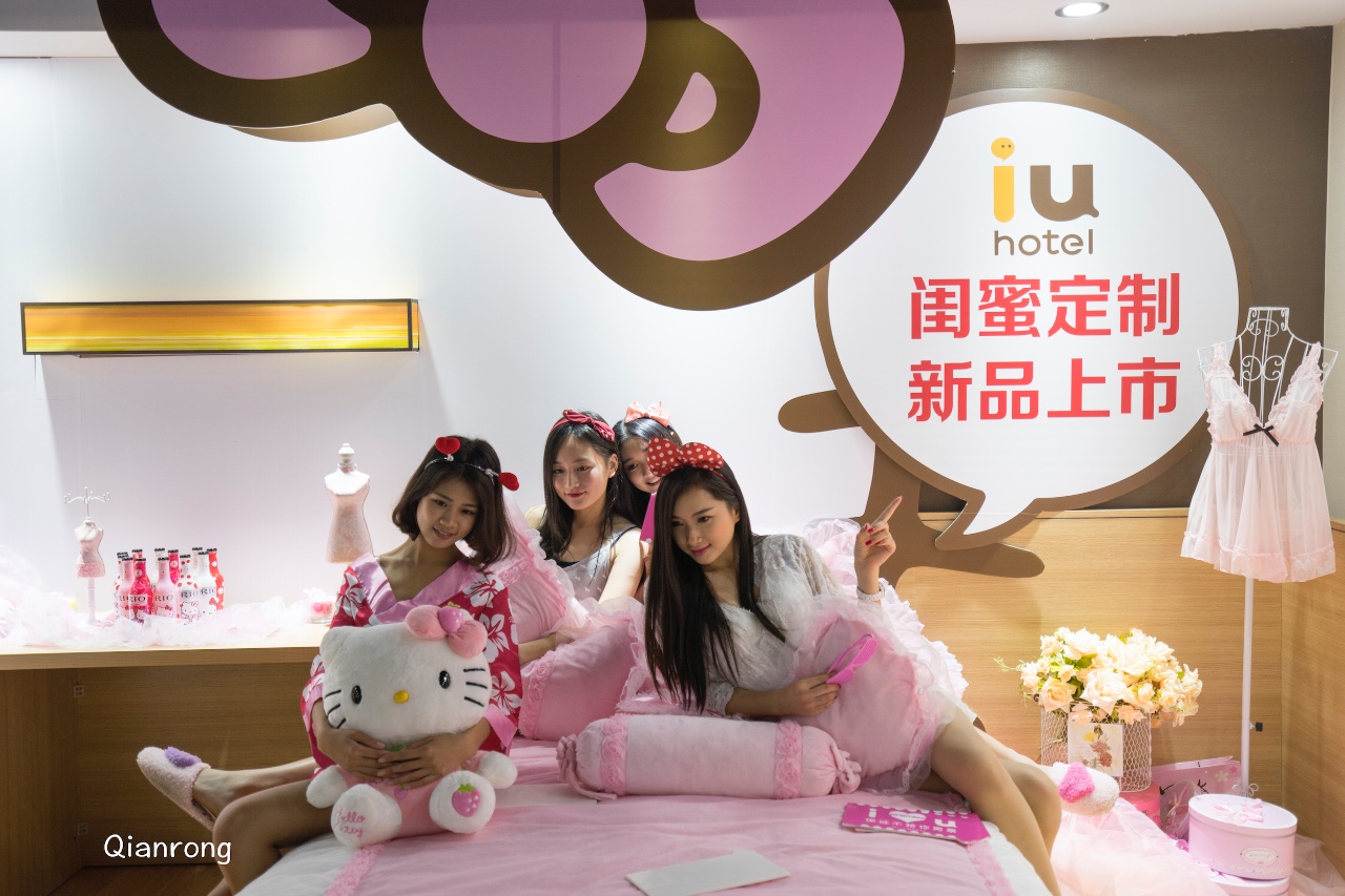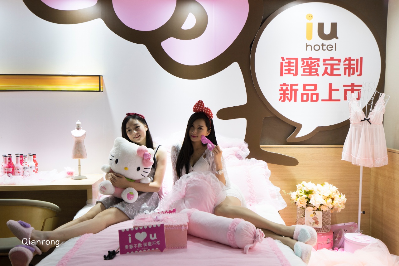 IU酒店准备了自拍杆、被套抱枕、拖鞋、小草发夹等各种道具,