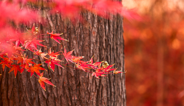 红枫的树叶通常在冬季会全部掉光,所以观赏红枫的最佳时间都在秋季。韩国的纬度要比我所在的南方城市高,气候也比我的城市要寒冷。所以在这个时候还能见到红枫,确实让我吃惊不小。所以我便只有拿着相机,在校园内追踪那即将逝去的最后一抹红色。