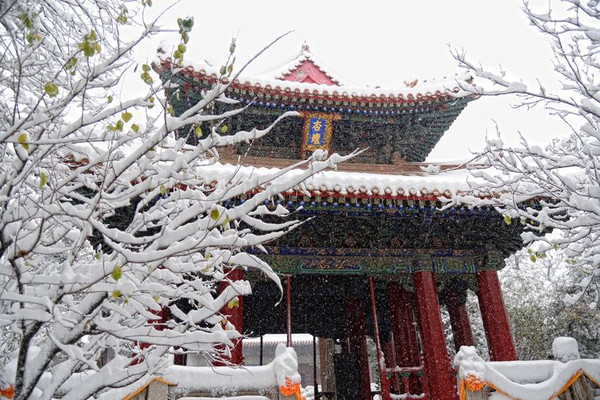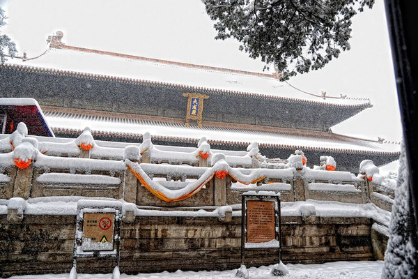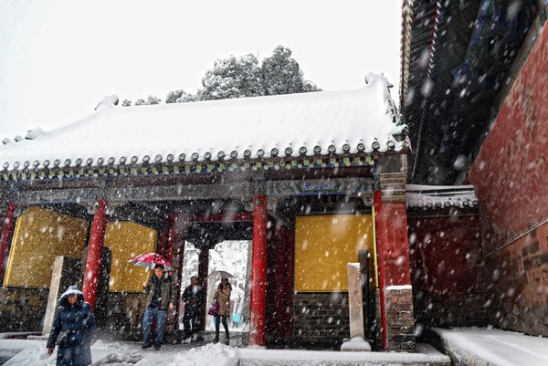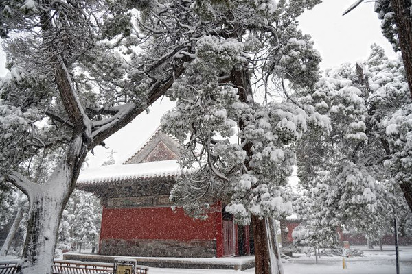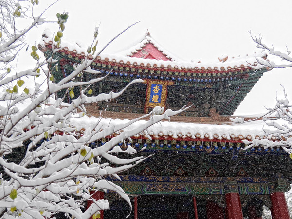 天降暴雪,孔庙内银装素裹分外妖娆,柏如银龙,庙似琼阁,欲与天公试比高。