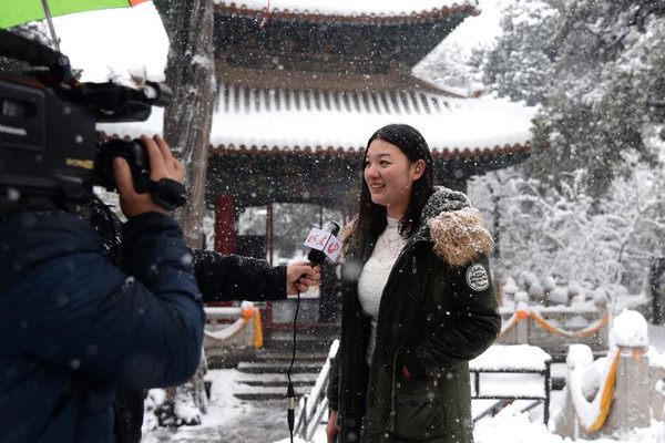 正巧遇到山东电视台冒雪采访:我们感觉太幸运了!