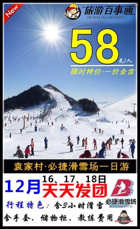 【滑雪开始了】58元袁家村、必捷滑雪一日
