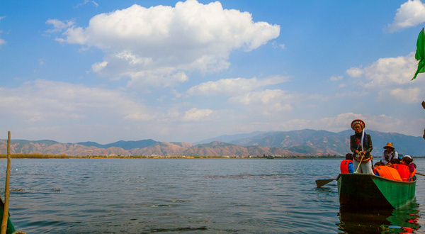 朝阳已升,光芒四射,湖面上金波粼粼,渔舟撒网,映在暖暖的阳光里,渐渐远去。我多希望成为他们的一员,悠悠地躺在小船上,品茗饮茶,倾听着白族少女的悠扬情歌,慵懒地享受着此刻的闲适。