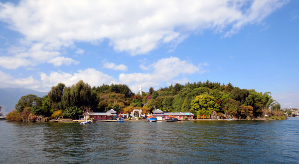 抵达这里在纯净的蓝天下,透过云层,阳光淡淡的抹在洱海上,水色温暖。渐渐地,金色的阳光肆无忌惮的展开来,湖心中铺满了金,这是一种动人心魄的美。