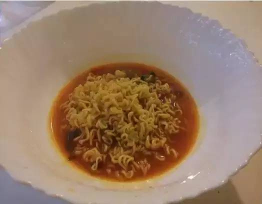 ②另煮一锅水,等年糕快好时,放入泡面煮至 7 分熟;