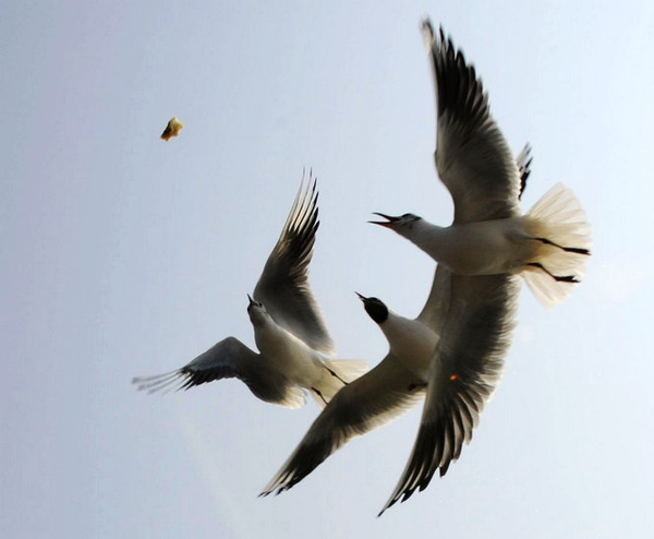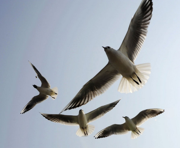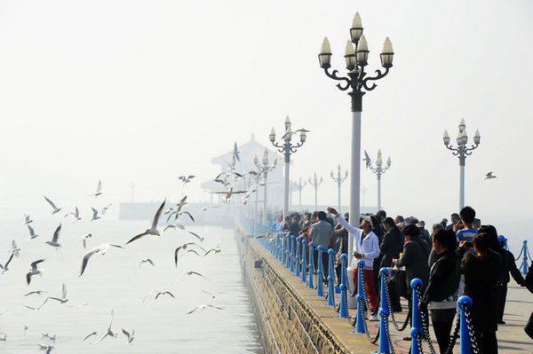 近年来,青岛的冬季又成了海鸥们的天堂,从遥远的北方飞来的海鸥们在青岛留了下来,成了这个城市的主人。它们云集在栈桥一带的海滨,或者觅食,或者嬉戏,洁白的身姿吸引了游人急促的步履。