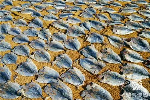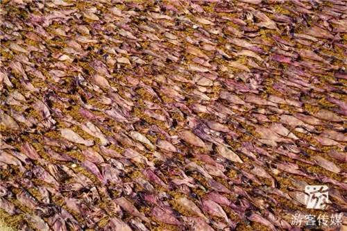 我们来到这里一下车就能闻到一股鱼腥味,抬眼望去,长长的海滩上到处都是堆成长方形的鱼阵,远处的渔民把打捞上来的鱼整理好之后,一部分直接在海边晒干,一部分就拿去鱼市贩卖。渔港岸边还有渔夫在晒网,旁边就是露天的晒鱼场,鱼市交易也在如火如荼地进行中。无数只乌鸦“呱呱”地叫着,盘旋在海边,时不时飞下来啄食渔夫晾晒的鱼干或被丢弃的小鱼。